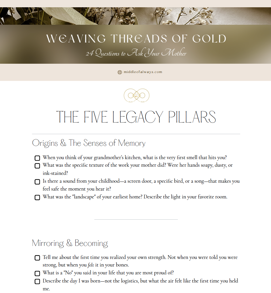 To get your story started, be sure to ask your mother these questions and start preserving her legacy. Click the image to access the PDF.