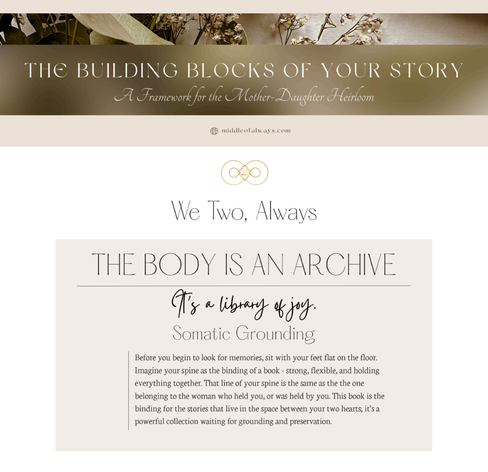 Start with the simple and elegant exercise of connecting to your shared history and naming the chapters of your life. Click the image to open your PDF, including: